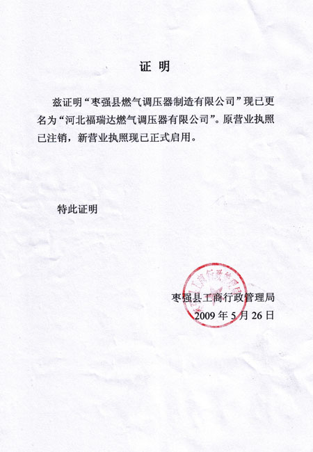 公司名稱變更證明