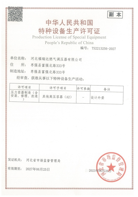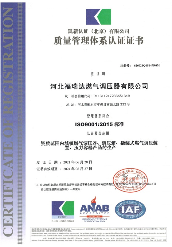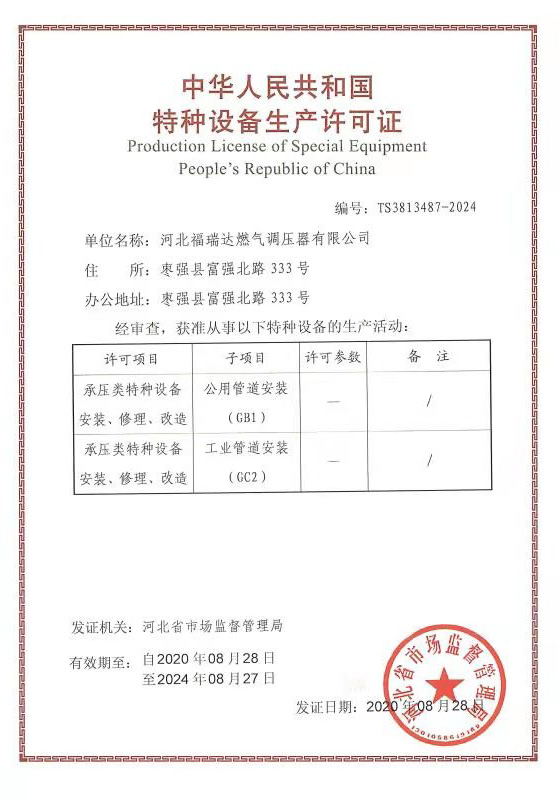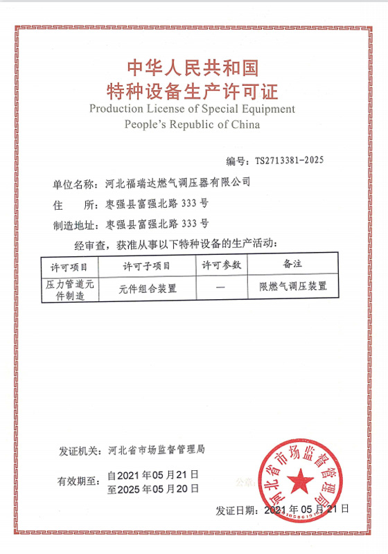 河北福瑞達燃氣調壓器有限公司一直緻力於燃氣調壓器的設計、開發制造,是集研發、生産、營銷及售後服務於一體的專業性制造企業。