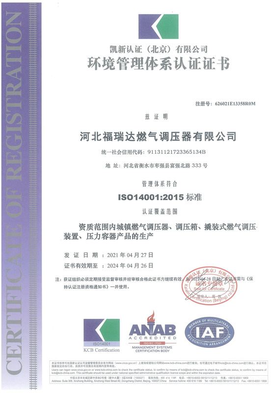 環境管理體系認證證書